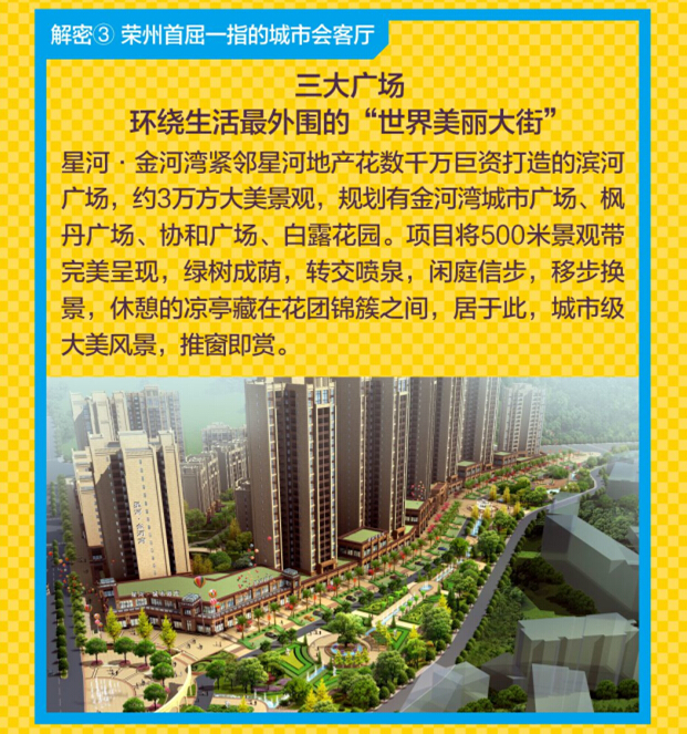星河·金河湾紧邻星河地产花数千万巨资打造的滨河广场,约3万方大美景观,规划有金河湾城市广场、枫丹广场、协和广场、白露花园。项目将500米景观带完美呈现,绿树成荫,转交喷泉,闲庭信步,移步换景,休憩的凉亭藏在花团锦簇之间,居于此,城市级大美风景,推窗即赏。