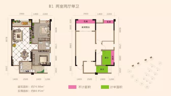 B1户型(建面74.98m²)