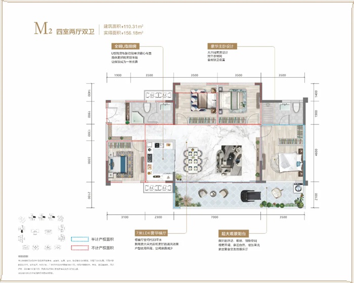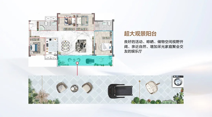 与 LDK 横厅相连的超大观景阳台,采光面超10米,总面积达22㎡,宛如悬浮于自然画卷之上的空中楼阁。极目远眺,视野无垠,城市盛景与山川秀色皆入眼帘。超宽采光面,让阳光肆意倾洒。于此,家庭聚会笑语欢声,朋友来访畅叙幽情,它是生活的欢乐场,也是心灵与自然交融的诗意角落。