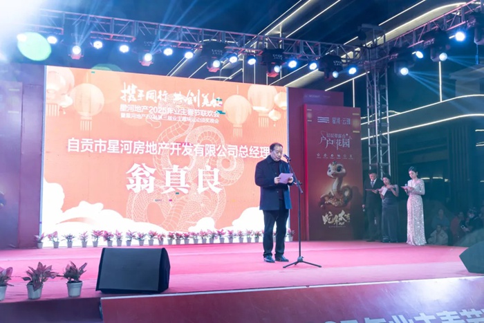 自贡市星河地产开发有限公司总经理翁真良以及星河物业相关领导出席晚会